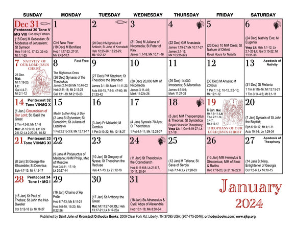 2024 Orthodox Wall Calendar โ The Saint John of Kronstadt Bookservice